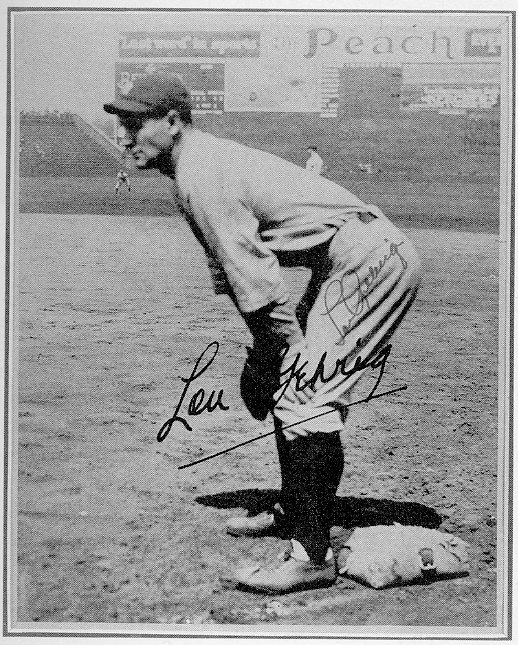 Baseball Premium from a Butterfinger candy promotion. Photograph signed, 8 x 10" twice, "Lou Gehrig" - one machine print and one original signature. (Actual signature on hip)